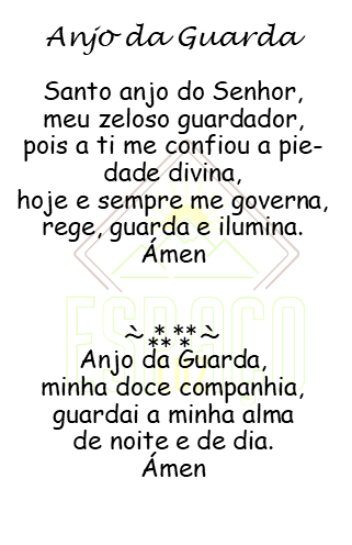 Texto da oração Anjo da Guarda em português sobre fundo branco com partes em verde